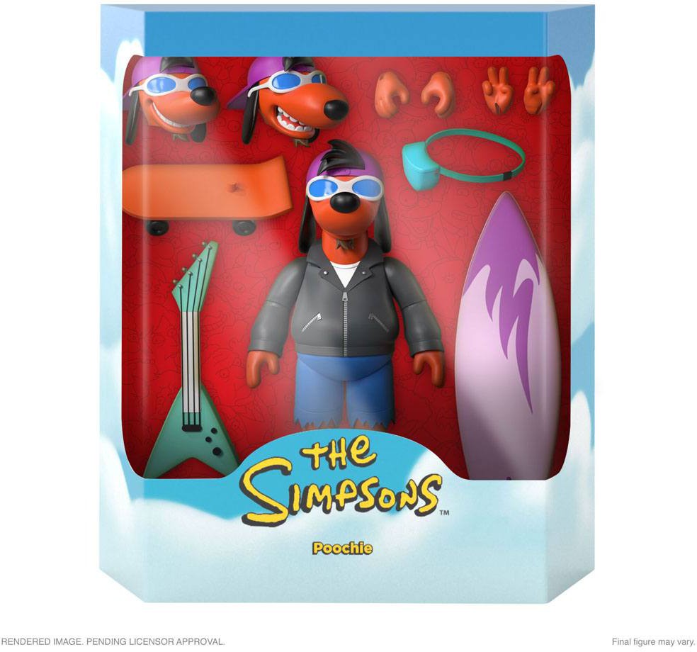 Inspirerad av avsnittet "Itchy & Scratchy & Poochie Show" i The Simpsons, kommer denna made-to-order 18 cm höga fullt ledade ULTIMATES!-figur av Poochie med utbytbara huvuden och händer och alla tillbehör du kan förvänta dig . Varje ULTIMATES! -Figur kommer förpackad i en lyxig fönstekartong.
