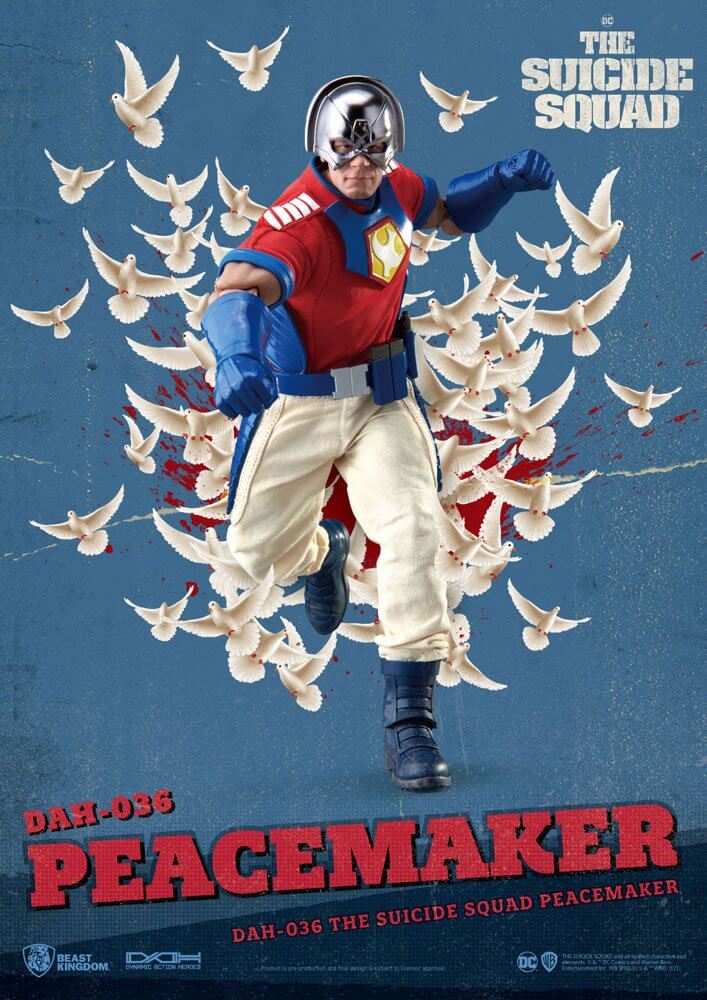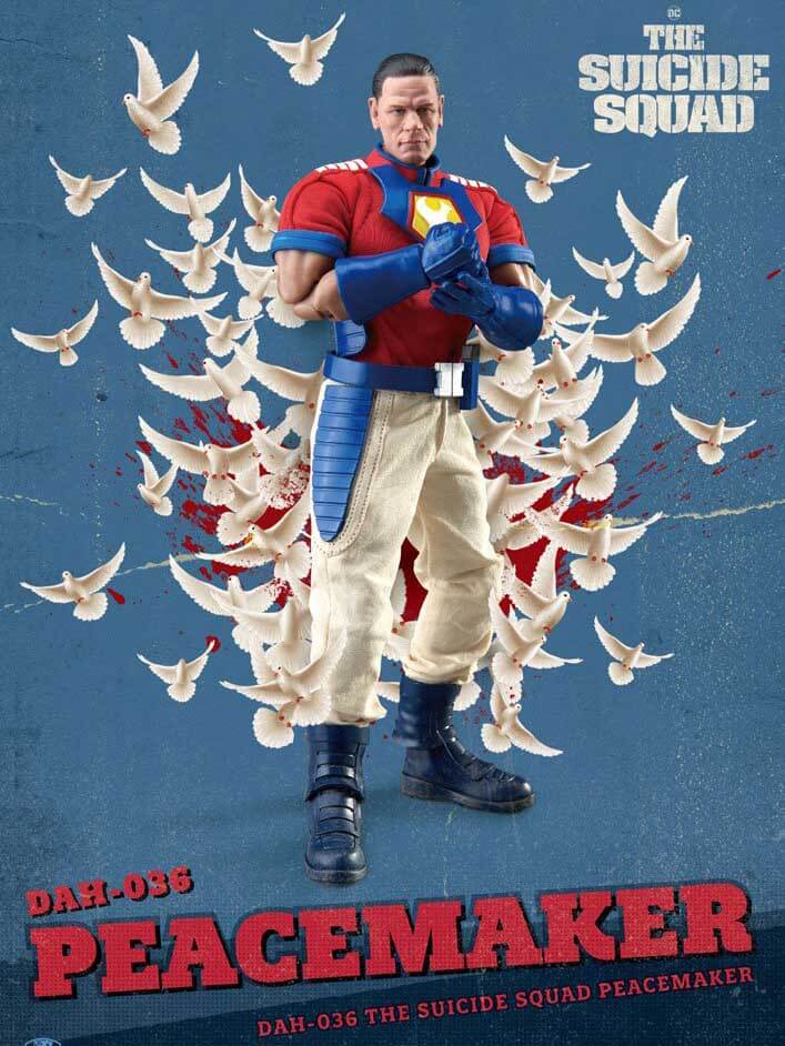 DAH-serien av realistiska actionfigurer under Beast Kingdom's 'Entertainment Experience Brand' presenterar den senaste hjälten; Peacemaker från The Suicide Squads senaste film. Baserat på versionen som spelades av den före detta brottaren som blev filmstjärna John Cena, är Peacemakers filmdebut en av muskler. Tyget som används för figuren visar Cenas otroligt stora kroppsbyggnad!