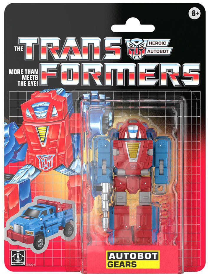 Re-experience the nostalgia of your favorite G1 action figures with the Transformers Retro Autobot Gears toy! This vintage G1 Autobot Gears toy is inspired by original G1 packaging. Gears is anti-social, a self-proclaimed misfit. He finds fault in everything and everyone. He acts this way to help cheer other up as they try to cheer him up. Transformers Retro G1 action figures feature vintage styling, accessories, and exclusive package art and tech specs. Clip out and save the on-box tech specs to share, then see how this figure stacks up against other heroic Autobots and evil Decepticons.