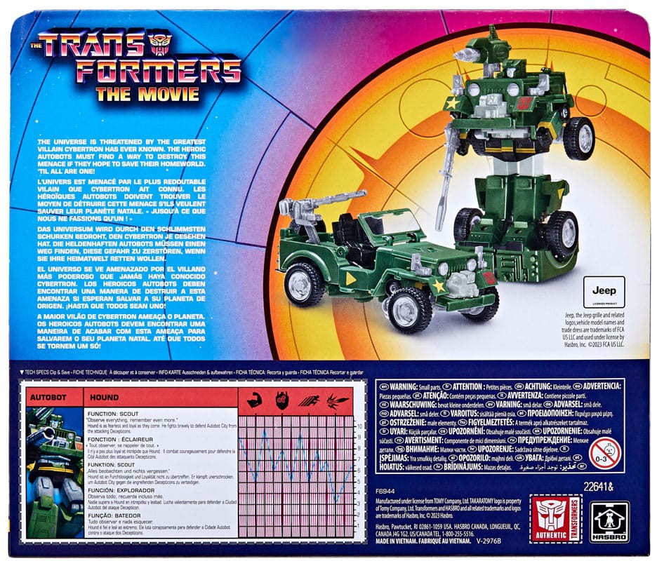 Re-experience the nostalgia of your favorite G1 action figures with the Transformers Retro Autobot Hound toy! Hound is as fearless and loyal as they come. He fights bravely to defend Autobot City form the attacking Decepticons. Transformers Retro G1 action figures are designed like the original releases, updated with deco based on the 1986 animated film, The Transformers: The Movie. Figures feature vintage styling, accessories, and exclusive package art and tech specs inspired by the 1986 movie. Clip out and save the on-box tech specs to share, then see how this figure stacks up against other heroic Autobots and evil Decepticons.