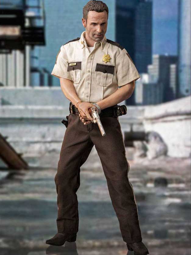 Denna Rick Grimes samlarfiguren i skala 1:6 är cirka 30 cm hög med en fullt ledad kropp, blandade material, signaturkläder och mycket detaljerad skulptur med en realistisk återgivning av Rick Grimes som han skildras av den begåvade skådespelaren Andrew Lincoln i första säsongen av "The Walking Dead".