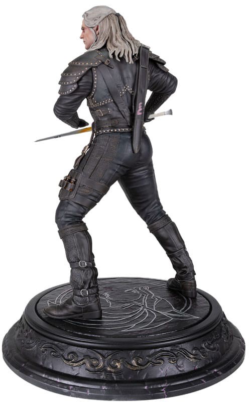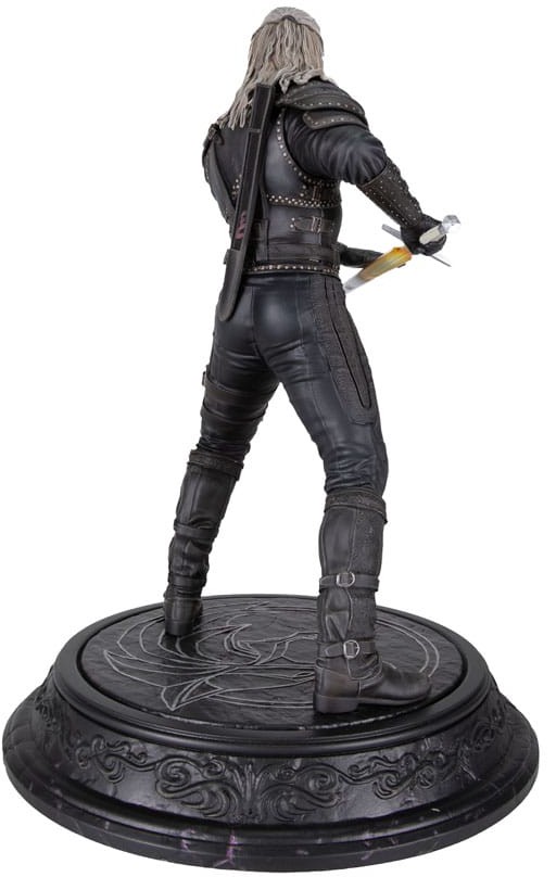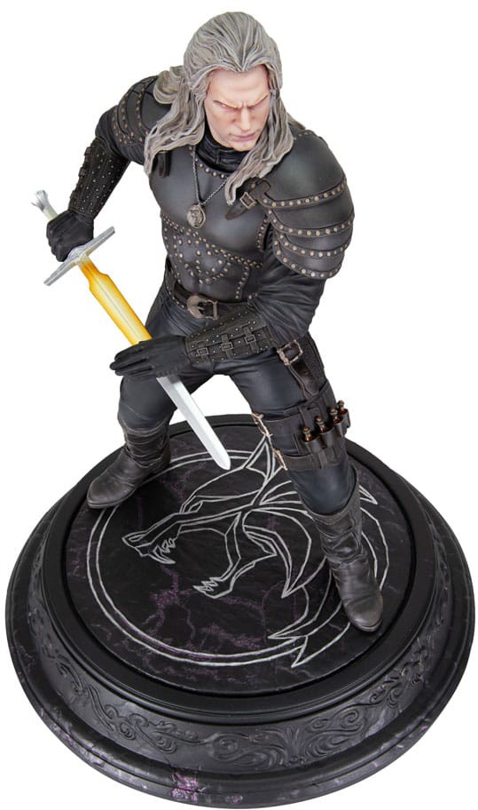 Outfitted in his battle-worn Witcher armor found in his ancestral home of Kaer Morhen, we see the legendary White Wolf readying his blade for an inevitably ferocious fight. With an updated base featuring a dark marble stone with inlay of the Wolf symbol that is seen on Geralt's Witcher Medallion.