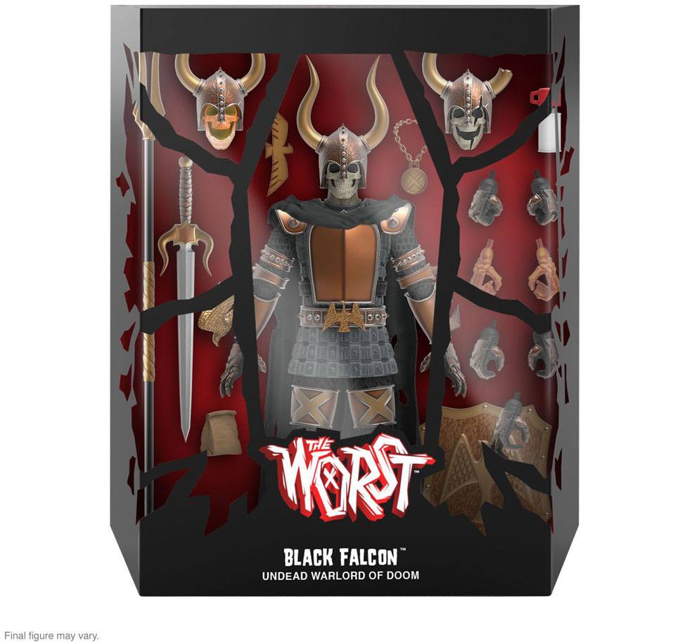 Black Falcon, the Undead Warlord of Doom, joins the ULTIMATES! World with this made-to-order 7" scale fully articulated ULTIMATES! Figure. The Worst is Super7's own gang of the most villainous vile vermin, and Black Falcon is one of... The Worst! Black Falcon returns to defile the world of the living with multiple interchangeable heads & hands and a variety of accessories.