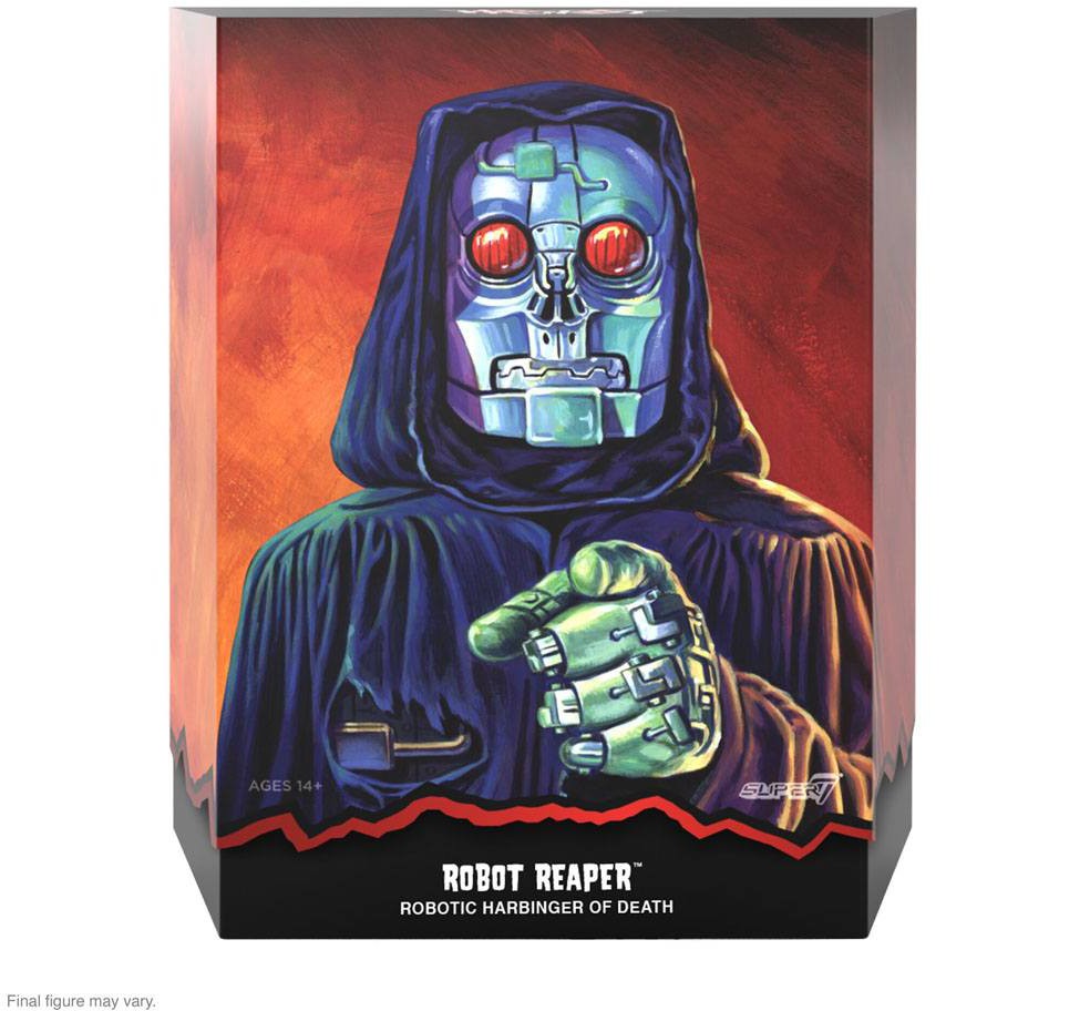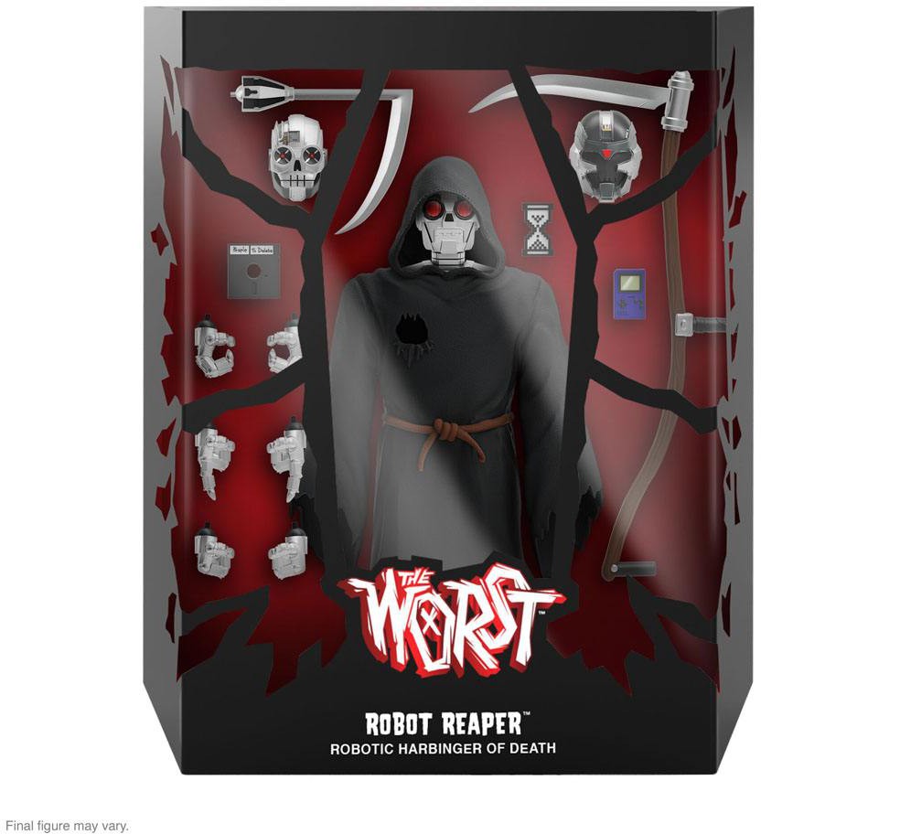 Robin Reaper joins the ULTIMATES! World with this made-to-order 7" scale fully articulated ULTIMATES! Figure. The Worst is Super7's own gang of the most villainous vile vermin, and Robot Reaper is one of... The Worst! He is here to delete all those whose time has come with multiple interchangeable heads & hands and a variety of accessories.