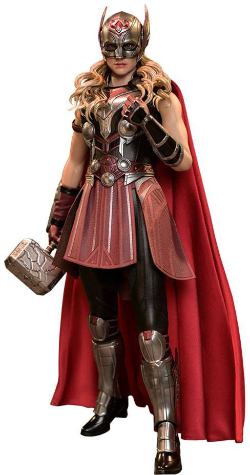 Den högt detaljerade Mighty Thor-figuren i 1/6 skala är baserad på Natalie Portman's uppträdande i filmen och kommer med utbytbara huvuden, skräddarsydd kroppsutrustning, en skadad Mjölnir med LED-ljusfunktion och handtag med blixteffekt samt ett figurställ!