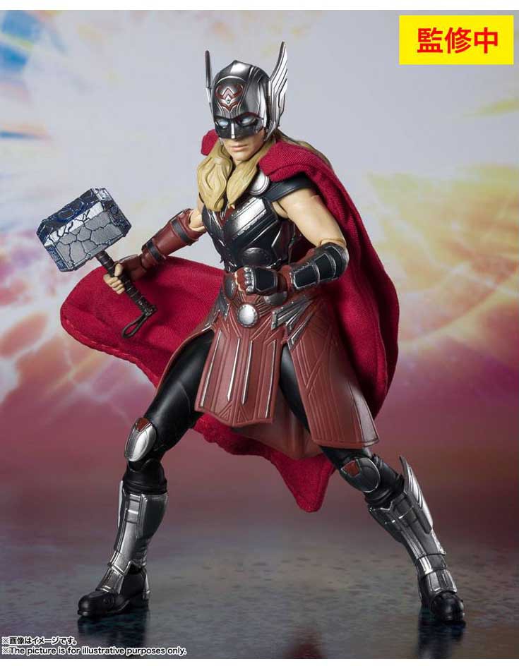 A new version of the Jane Foster from "Mighty Thor," featuring "new method" sculpting and Tamashii digital coloring for a lifelike appearance! In addition to a face so accurate we had to clear the portraiture rights with Natalie Portman, it includes a cracked Mjolnir hammer and numerous effect parts, plus a cape with internal wires for posability!