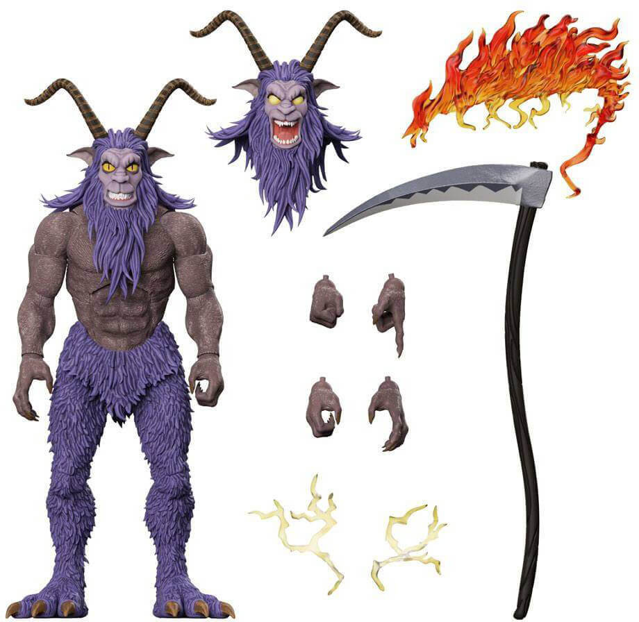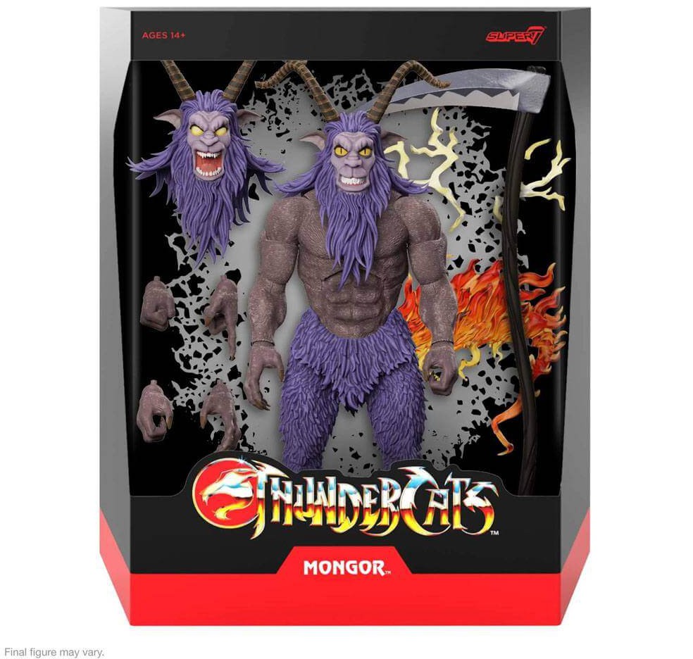If the goat-like demon Mongor strikes fear in your heart then you're going to be in trouble! Standing almost 9" tall, this ThunderCats ULTIMATES! figure of Mongor features interchangeable heads & hands, his scythe, and multiple weapon-effects. Bravery can weaken mighty Mongor so if you have the courage to get his made-to-order ThunderCats ULTIMATES! figure, then you probably have what it takes to keep him from threatening the rest of your collection!
