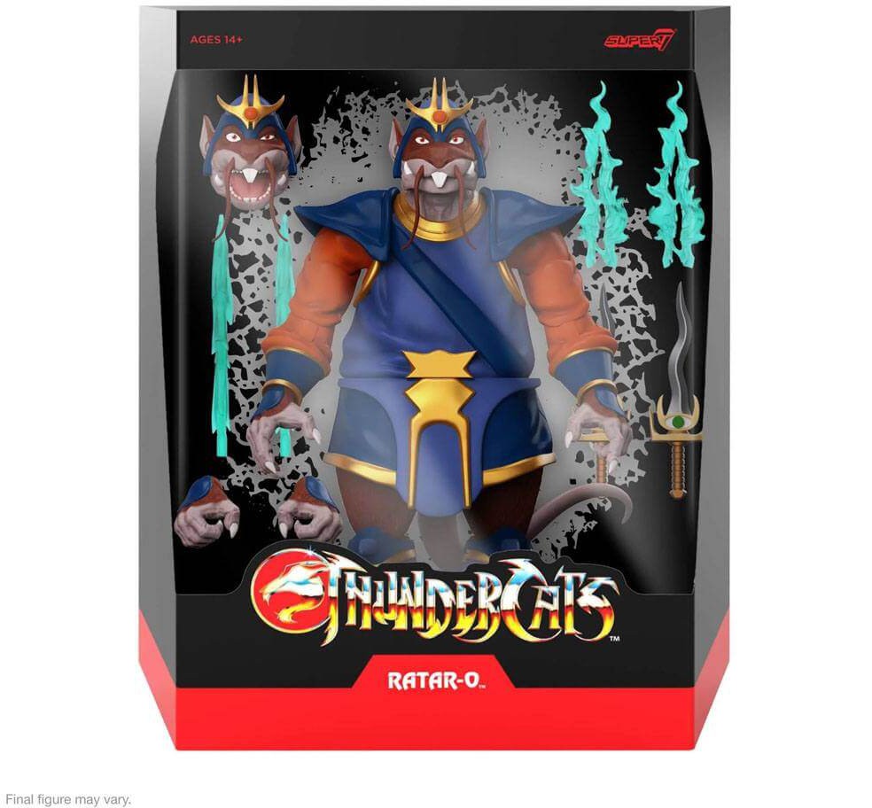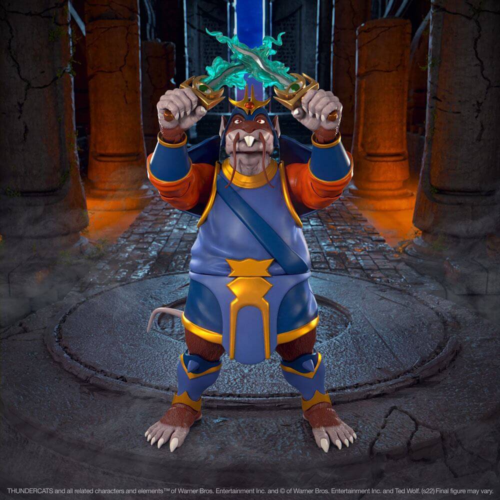 Rats and cats are natural enemies so it's no surprise that the mutant commander Ratar-O is always looking for a way to take down the ThunderCats! Standing almost 8" tall, this ThunderCats ULTIMATES! figure of Ratar-O features interchangeable heads & hands, the Rat's Eye daggers, and multiple dagger effects. You won't need a trap to snag this made-to-order ThunderCats ULTIMATES figure of Ratar-O!