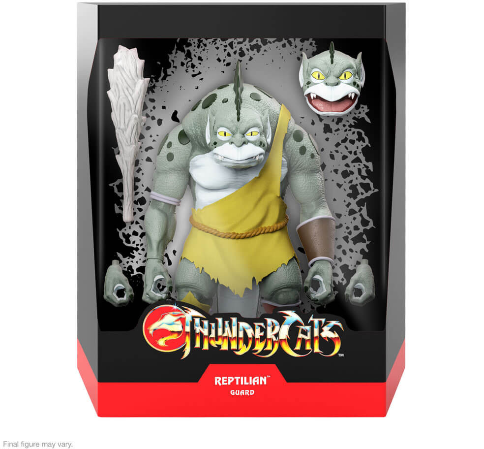 The scaly Reptilian Guards from the planet Plun-Darr are eveready sentries armed to strike down any would-be rescuers! This 7" scale highly articulated ThunderCats ULTIMATES! Reptilian Guard figure depicts the would-be warden with interchangeable heads and hands, a soft goods tunic, and a spiked truncheon accessory. Build your own army of ULTIMATES! Reptilian Guards, Warriors, and Brutes to face off against the rest of your ThunderCats collection!