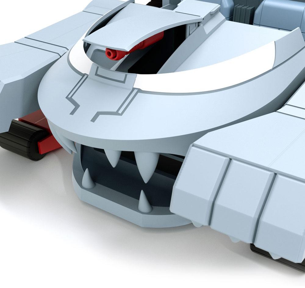 ThunderTank features cartoon accurate deco, with opening cargo bay doors, articulated jaw, rolling