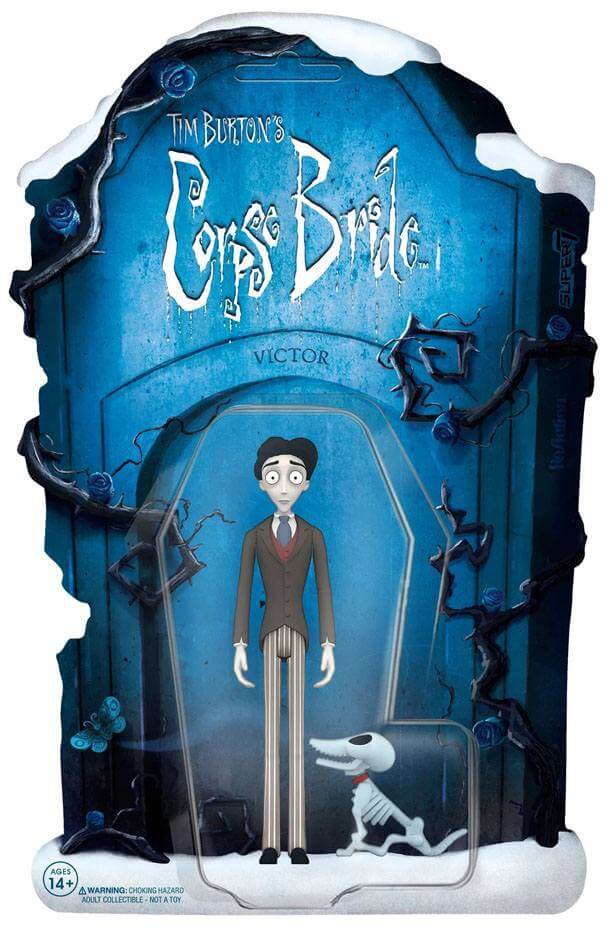 Through a grave misunderstanding, Victor Van Dort inadvertently marries Emily, the Corpse Bride, and ends up in the Land of the Dead! This 3.75" scale articulated Tim Burton's Corpse Bride ReAction Figure of Victor Van Dort features tuxedo suit detail and comes with the skeleton of Scraps, his deceased dog. No doubt you've been dying to add Tim Burton's Corpse Bride ReAction Figures to your collection, and now you can!