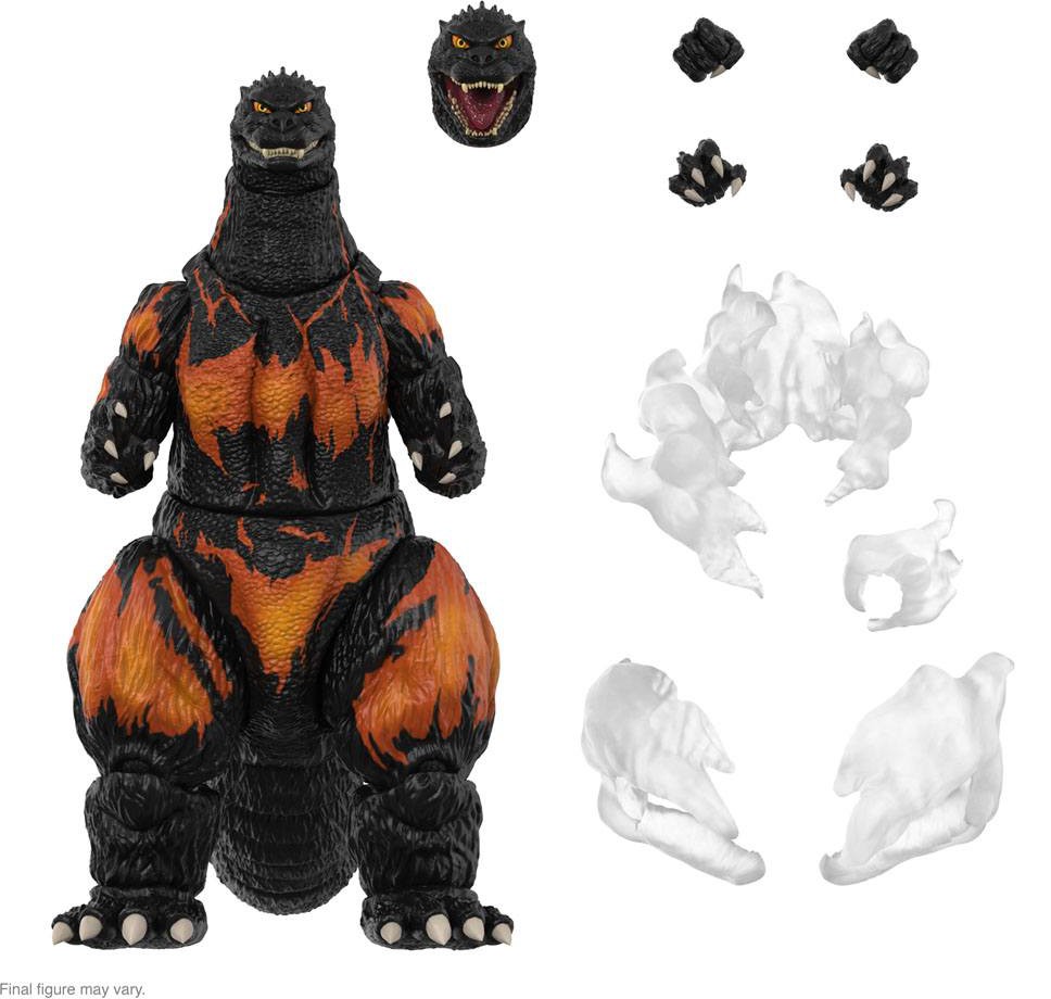 "Burning" Godzilla ULTIMATES! actionfigur inspirerad av filmen från 1995, Godzilla vs Destroyah. Kommer med utbytbara huvuden och händer samt rökeffekter.