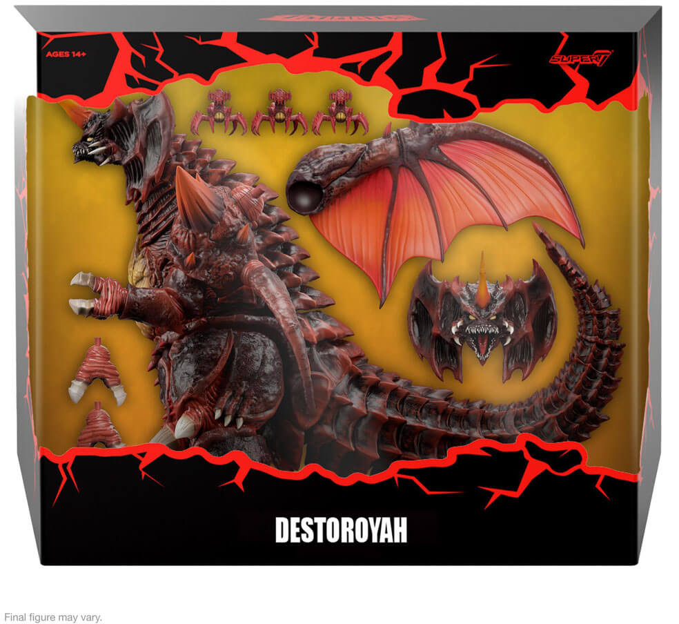 It's the living embodiment of the Oxygen Destroyer, the only weapon to have ever (spoiler alert!) killed a Godzilla! As seen in the 1995 film Godzilla vs Destoroyah, this titanic Toho ULTIMATES! Destoroyah figure depicts the monster in its final form, measuring over 9" tall, 14" wide, and 14" long. Including interchangeable heads, claws, and three juvenile forms, Destoroyah looks ready to unleash an attack with its laser horn or Oxygen Destroyer beam at any moment! Add an opponent worthy of your Kaiju collection with this made-to-order Destoroyah ULTIMATES! figure!