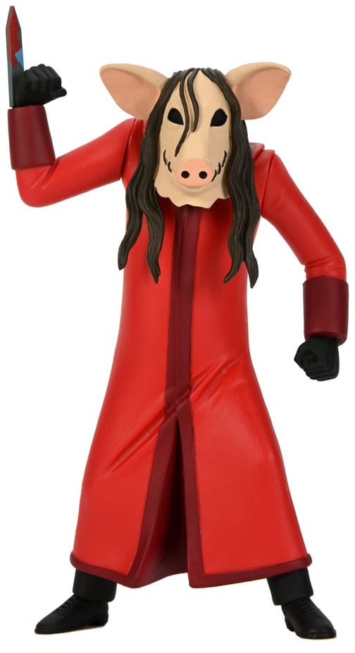 Bring the fun of Saturday morning cartoons to your horror collection with the adorable little creeps of Toony Terrors, NECA's line of stylized horror icons! Standing approximately 6 inches tall, this Jigsaw Killer from the SAW movies features his red robe and includes an extra interchangeable head and blade accessory. Comes in window box packaging with a bonus cutout backdrop.