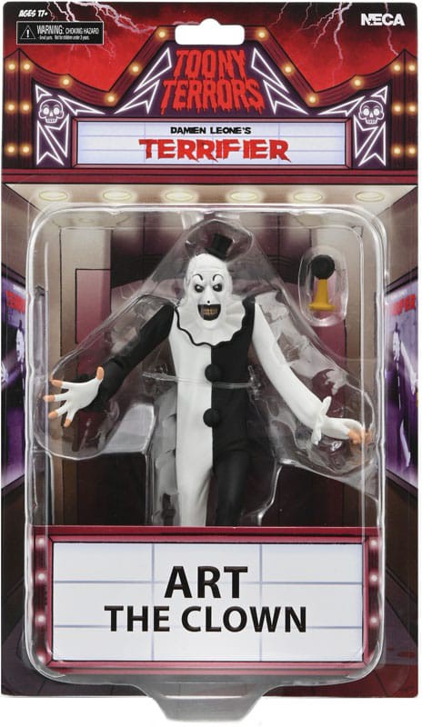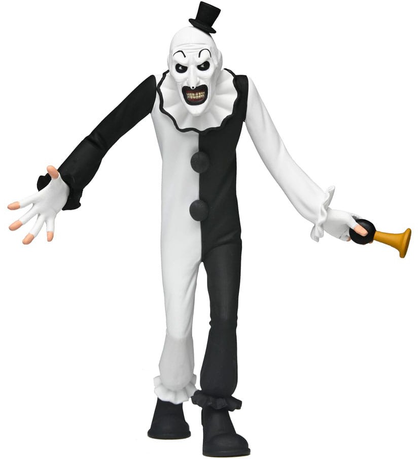 From the cult horror film Terrifier comes this stylized action figure of Art the Clown as part of the Toony Terrors line.