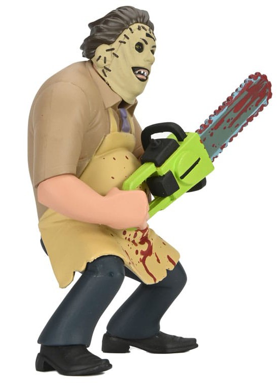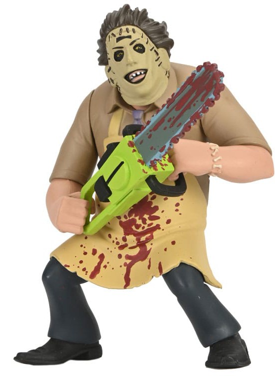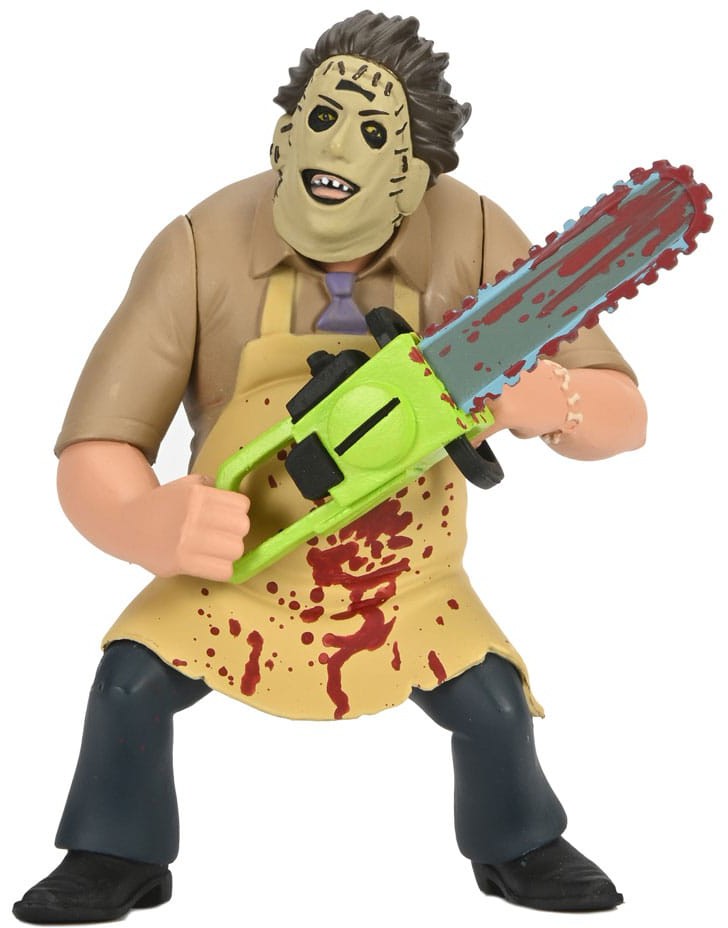 Ta med det roliga med lördagsmorgonens tecknade serier till din skräcksamling med de bedårande små krypen från Toony Terrors, NECA: s linje med stiliserade skräckikoner! Vi är glada över att kunna starta 50-årsjubileet av 1974 års film Motorsågsmassakern med denna 15 cm stora actionfigur av Leatherface. En ny tagning på vår klassiska Leatherface, den här versionen har ny blodig deco och uppdaterad motorsåg deco. Den levereras i en 50-årsjubileum blisterförpackning med en utskuren kortback med originalkonst av NECA-målaren Geoff Trapp.