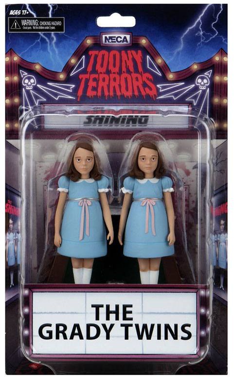 Grady Twins från skräckklassikern The Shining ansluter sig till den bedårande läskiga Toony Terrors-linjen! Denna 2-pack innehåller tvillingarna i 6-tums skala för att passa in i resten av Toony Terrors-samlingen, med en displaybas.