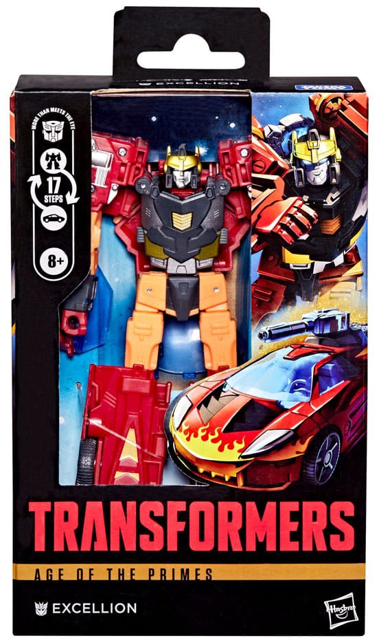 Celebrate the 20th anniversary of the Transformers: Cybertron animated series with the Transformers Age of the Primes Deluxe Class Excellion action figure! This 5.5-inch Excellion action figure converts between robot and sports car modes in 17 steps. Includes attachable accessories. The Excellion figure is inspired by the character from the Transformers universe and features articulated head, arms, and legs for awesome action poses. Transformers: Age of the Primes opens up the world of the Primes, the very first bots in Transformers mythology, a pantheon of Thirteen beings, each with a unique ability and personality. Every battle, every bot, and every power in the Transformers universe can be traced back to one of The Thirteen. Collect and combine different characters to create your ideal Age of the Primes lineup.