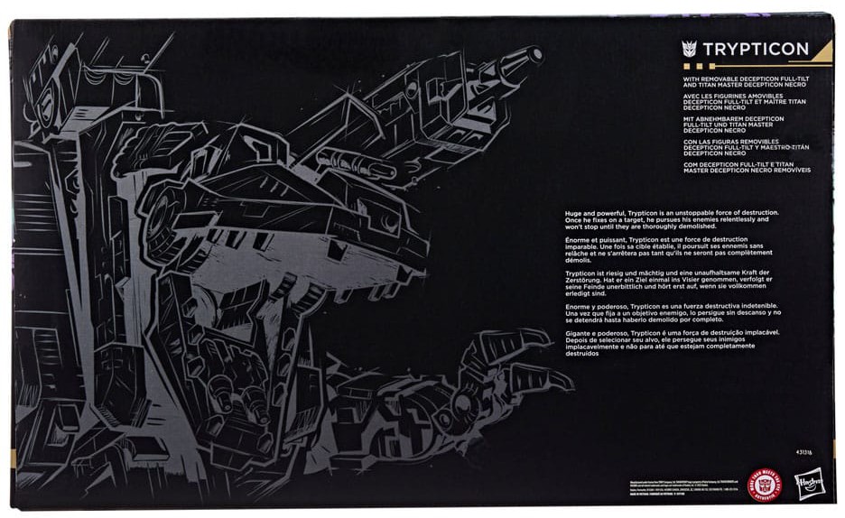 Take your Transformers figure collection to the next level with the Transformers Generations Selects Age of the Primes Titan’s Return pack! Generations Selects adult collectibles are a fan-dedicated line of figures featuring fan-favorite, special edition characters you can’t find in the main line. This pack includes the 18-inch (45 cm) Trypticon figure and the 5.5-inch (4 cm) Decepticon Full-Tilt figure, which has a removable head that converts to the Titan Master Decepticon Necro figure. Trypticon figure features triple conversion between dinosaur, spaceship, and ciy modes. Decepticon Full-Tilt figure converts between robot and car modes. These Transformers toys are inspired by the characters from the original G1 animated series, The Transformers.