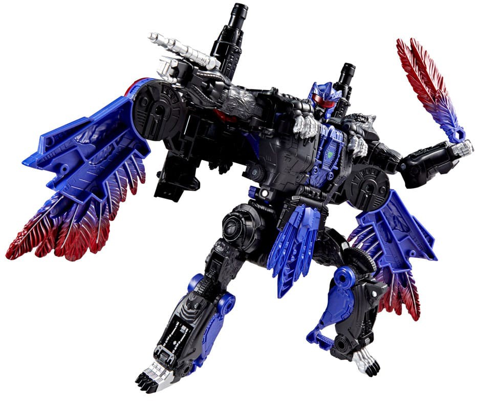 The 7.5-inch (19 cm) Leader Class figure converts from robot action figure to eagle-winged tiger mode in 43 steps.