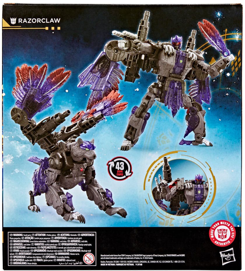 Med avancerad poserbarhet och tillbehör som blasters och vingsvärd ger Razorclaw en kraftfull närvaro i varje Transformers-samling. En perfekt figur för både dynamiska poser och storslagen uppvisning.