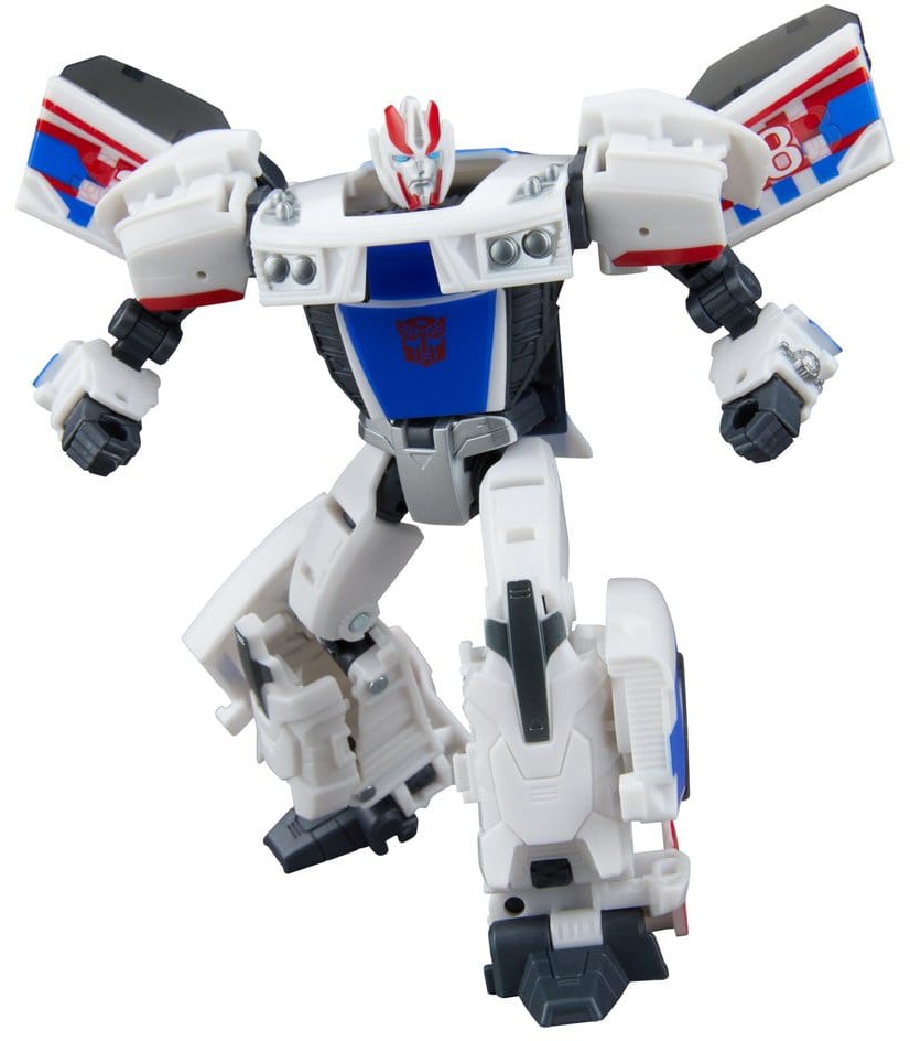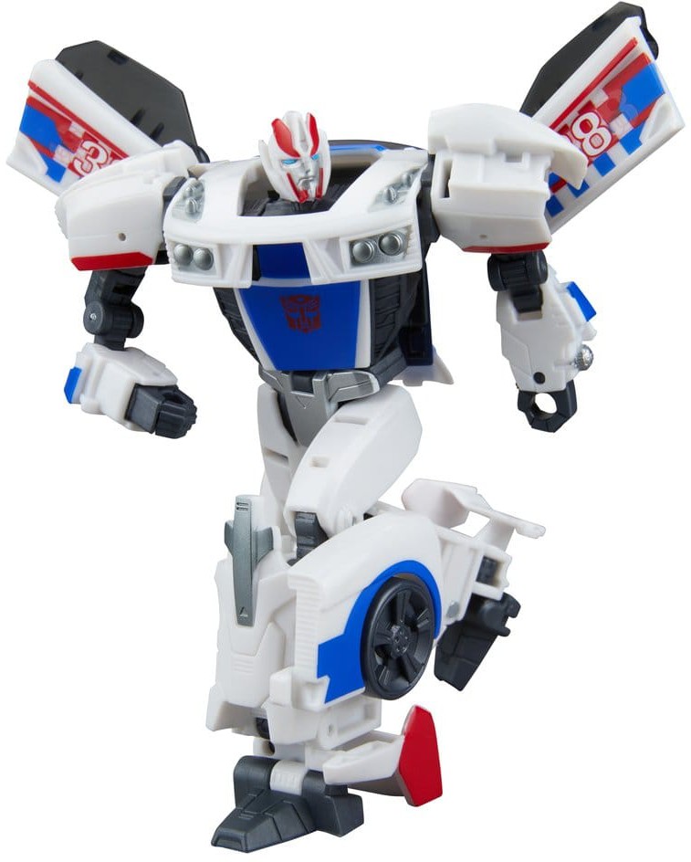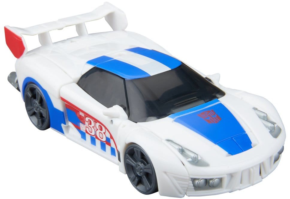 The 5.25-inch (13 cm) Deluxe Class figure converts from robot action figure to toy car mode in 20 steps.