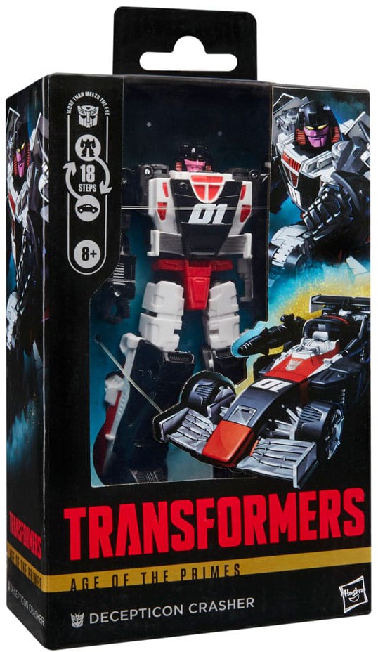 Unite your favorite characters from across the world of Transformers robots into your collection with the Transformers Age of the Primes Deluxe Class Decepticon Crasher action figure! This 5.5-inch Decepticon Crasher action figure converts between robot and sports car modes in 18 steps. Includes 2 blaster accessories that attach in both modes. The Decepticon Crasher figure is inspired by the character from the Transformers universe and features articulated head, arms, and legs for awesome action poses. Transformers: Age of the Primes opens up the world of the Primes, the very first bots in Transformers mythology, a pantheon of Thirteen beings, each with a unique ability and personality. Every battle, every bot, and every power in the Transformers universe can be traced back to one of The Thirteen. Collect and combine different characters to create your ideal Age of the Primes lineup.