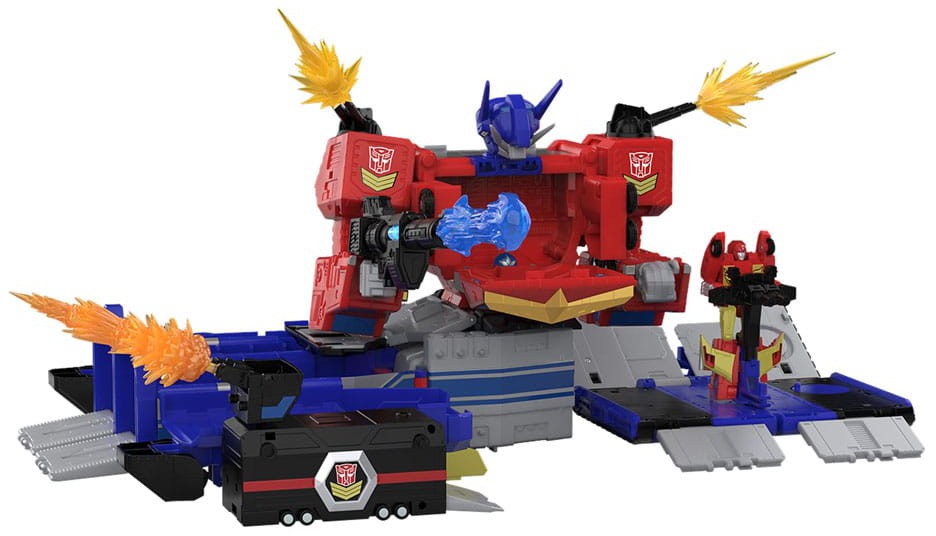 Unite your favorite characters from across the world of Transformers robots into your collection with the Transformers Age of the Primes Titan Class Star Optimus Prime action figure! This 15-inch (38 cm) The Thirteen Star Optimus Prime action figure features 3-in-1 conversion between robot, truck, and battle station modes. Includes Micromaster Autobot Hot Rod figure, MT-13 Microtrailer, tread unit, cannon blaster, shoulder blasters, ammo clip, swivel turret that becomes a blaster, Zodiac orb, and blast effects accessories. The Thirteen Star Optimus Prime figure is inspired by the Transformers universe and features articulated head, arms, and legs for awesome action poses. Transformers: Age of the Primes opens up the world of the Primes, the very first bots in Transformers mythology, a pantheon of Thirteen beings, each with a unique ability and personality. Collect different characters to create your ideal Age of the Primes lineup.