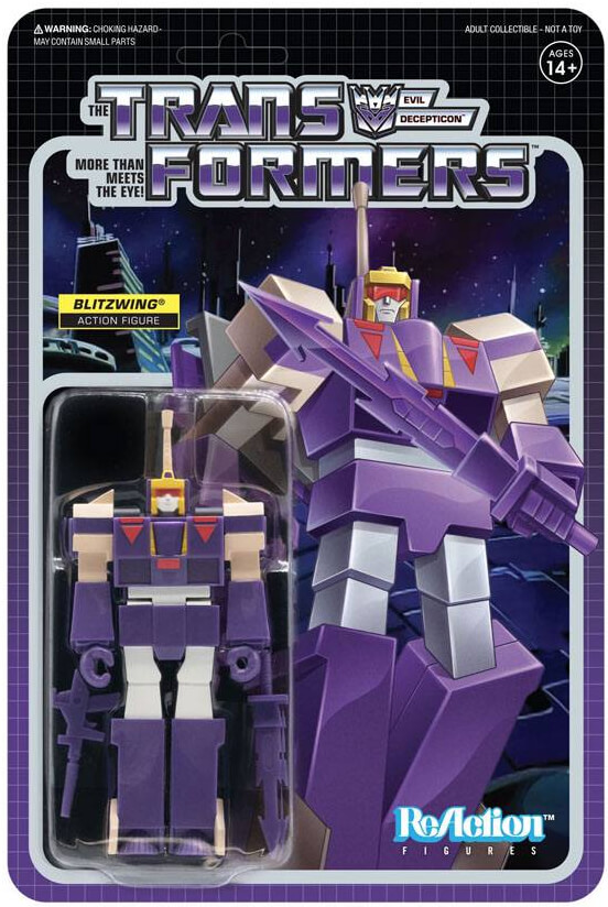 Part fighter-jet, part battle-tank, all warrior. Blitzwing is nobody's friend, but the Decepticons tolerate him because he's so good at fighting the Autobots. Portrayed in true G1 style, this 3.75" ReAction Figure will be an invaluable addition to your Transformers lineup.