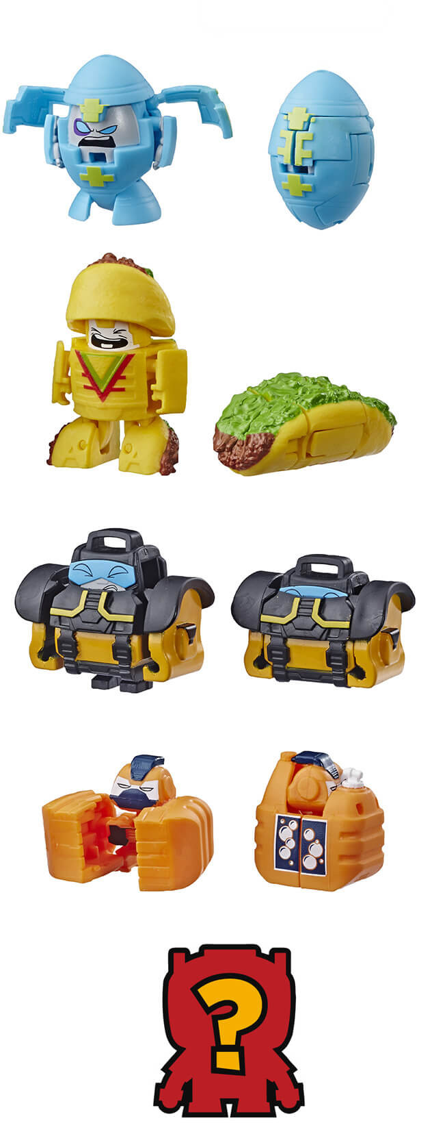 Samlingsbara BotBots-figurer är ungefär 2-3 cm höga och byter från helt normala föremål till små Transformersrobotar i tre till fem enkla steg.