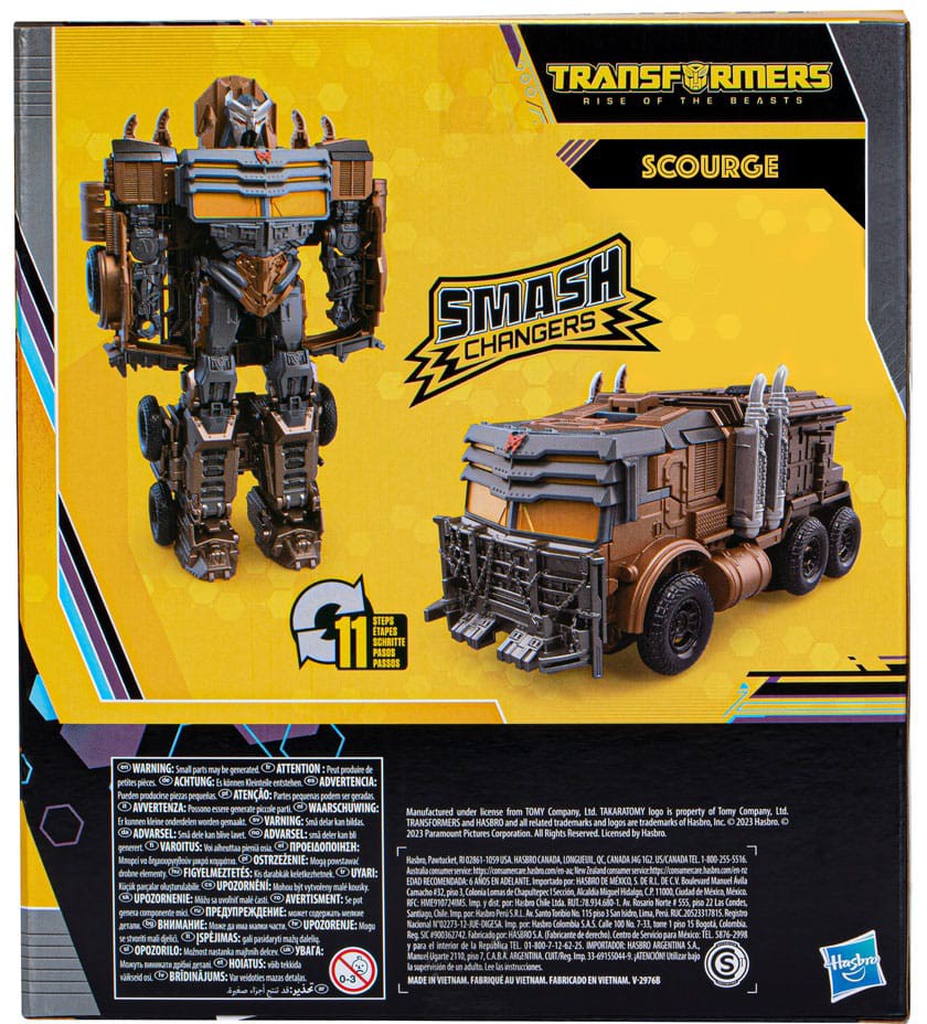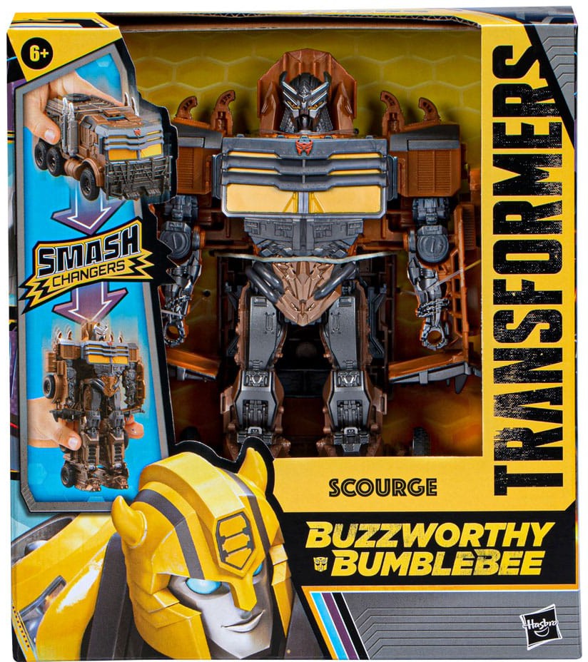 Smash into action with the Transformers: Rise of the Beasts Smash Changer Scourge! Smash Changers figures are based on characters from the new Transformers movie, Transformers: Rise of the Beasts! Figures convert from alt mode to toy robot mode in 3 steps by smashing. (Each sold separately, subject to availability.) Transformers toys for 6 year old boy and girl and up make great gifts for kids.