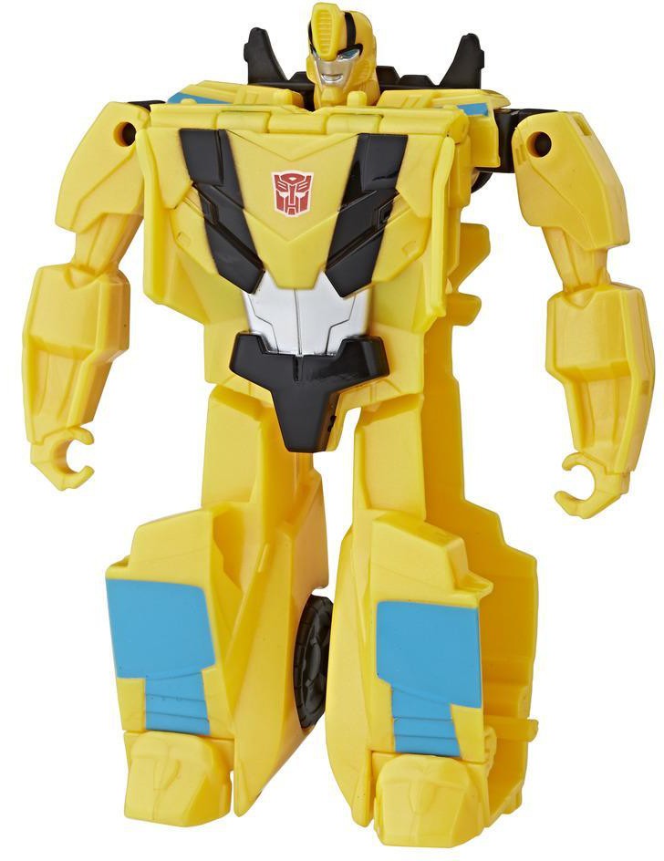 Experience the excitement of instant conversion with figures that change between modes in 1 step. Convert this 1-Step Changer Bumblebee figure from robot to vehicle in 1 quick, snap-back motion. Imagine charging into battle in the blink of an eye with Transformers Cyberverse 1-Step Changer figures.