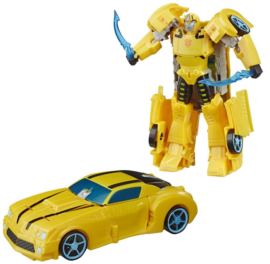 Combine Ultra Class Bumblebee with Energon Armor to convert him into his powered-up mode. Pull out his Cybertronian Sabers weapons in the last conversion step to activate his Energon Armor-Up feature. Armor attaches automatically! Robot stands about 17 cm tall.