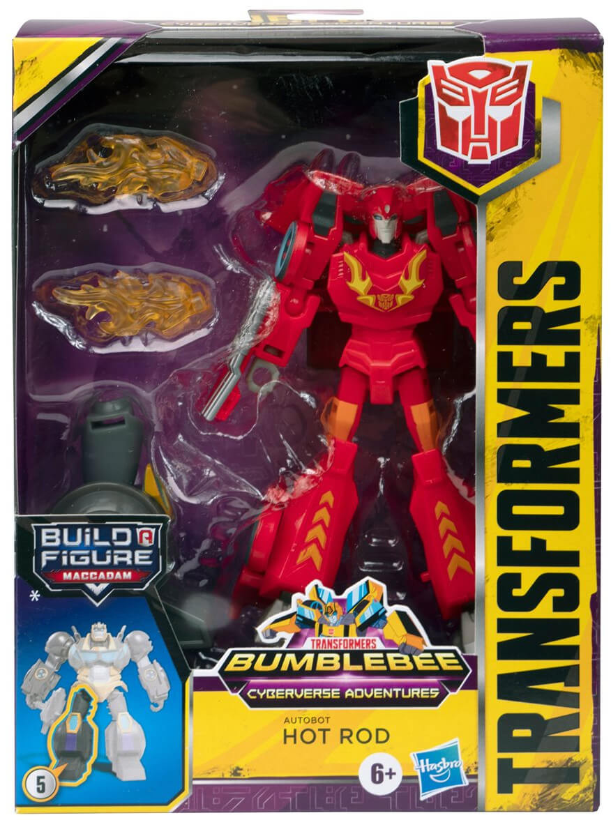 Collect them all and build Maccadam with these Transformers Cyberverse Deluxe figures! Each 5-inch tall transforming figure includes enhanced detailing and decoration from Transformers Cyberverse, but what makes them even more special is a build-a-figure piece! For the very first time, Hasbro will let fans create Maccadam of Maccadam's Old Oil House. Collect all 8 deluxe figures to build yours!