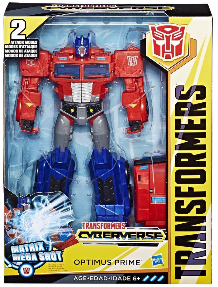 Convert and attack with Transformers Cyberverse Action Attackers! Change figure from vehicle to robot mode in 11 steps. The last step of conversion automatically activates Optimus Prime figure’s signature Matrix Mega Shot Action Attack move! Repeatable attack move activates in both vehicle and robot mode!