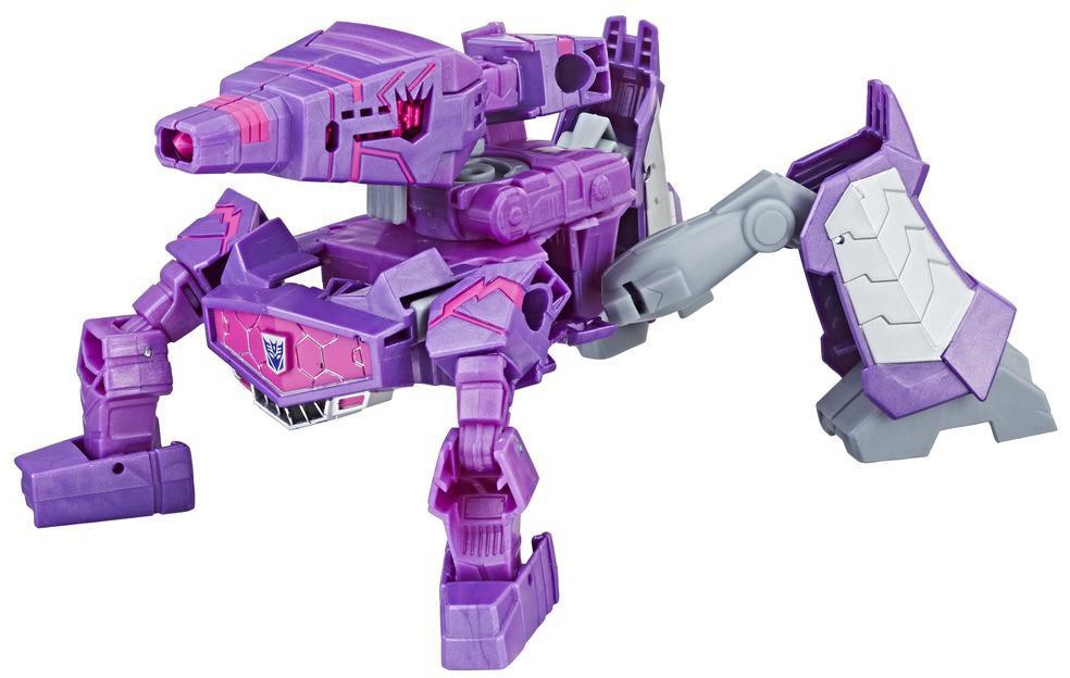 Convert and attack with Transformers Cyberverse Action Attackers! Change figure from robot to beast mode in 14 steps. The last step of conversion automatically activates Decepticon Shockwave figure’s signature Shock Blast Action Attack move! Once converted, attack move can be repeated through easy reactivation steps