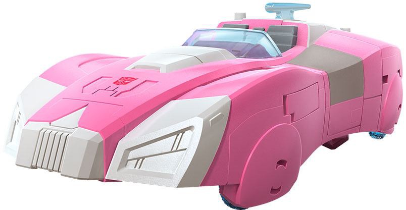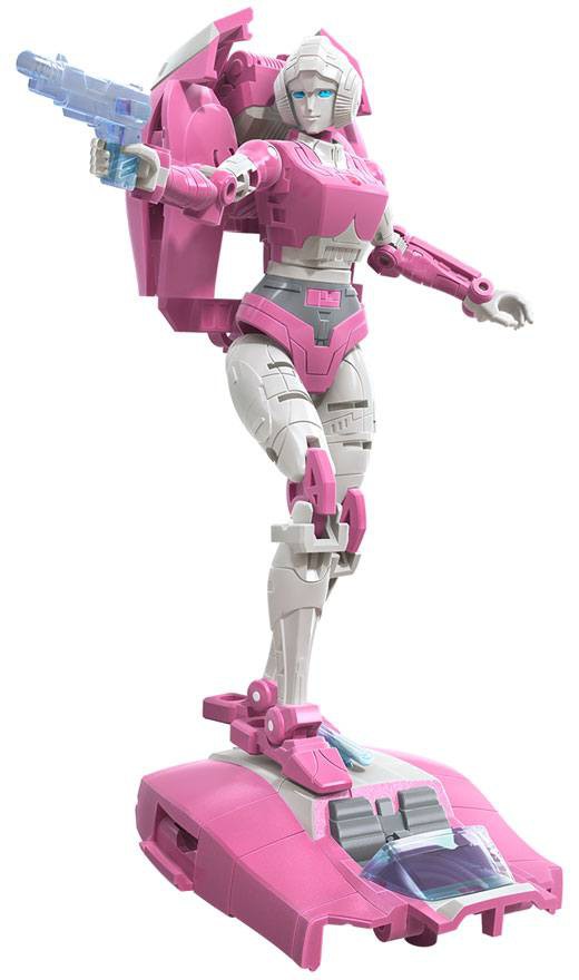 - Arcee toy converts into classic G1 sportscar mode in 15 steps and comes with a blaster accessory. Part of figure's backpack can be removed for a sleeker look and used as a hoverboard accessory.