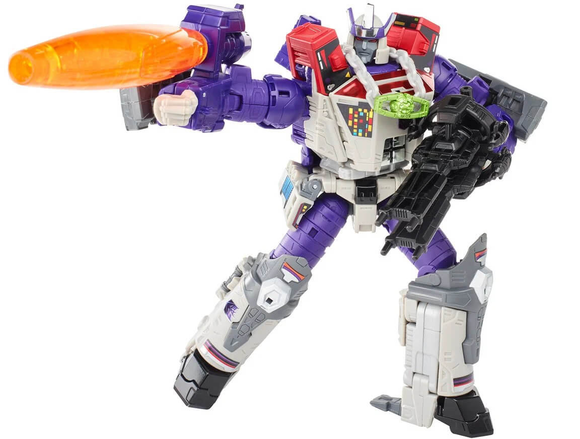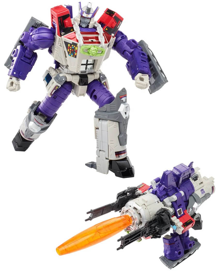 Galvatron i retrofärger. Denna G1 inspirerade Galvatron Transformers förvandlas från robot till kanon i 33 steg. Figuren kommer i de klassiska grå och lila färgerna som figuren från 80-talet.