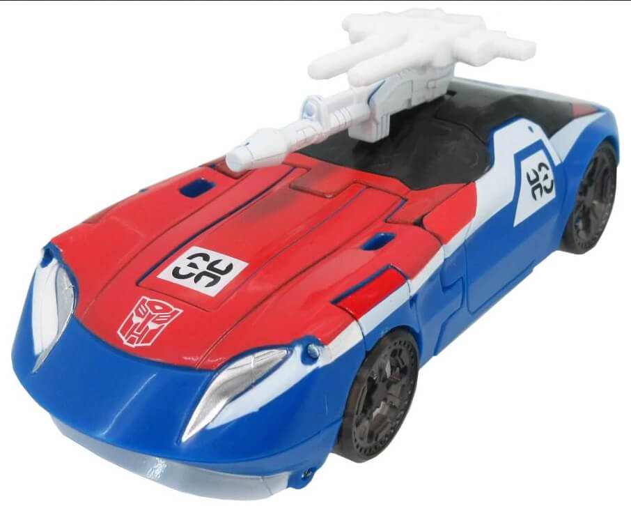 This special edition Generations Selects WFC-GS06 Smokescreen figure portrays the classic G1 character with a G1-accurate head sculpt. Figure converts to a Cybertronian alt mode in 14 steps, decorated to reveal how Smokescreen would have looked on Cybertron. The paint job incorporates Cybertronian numbers into his classic exterior. The Smokescreen figure comes equipped with a W-45 Acid Pellet Blaster accessory and 2 W-50 Volt-Beam Cannon accessories that can mount on his shoulders or the hood of his vehicle mode.