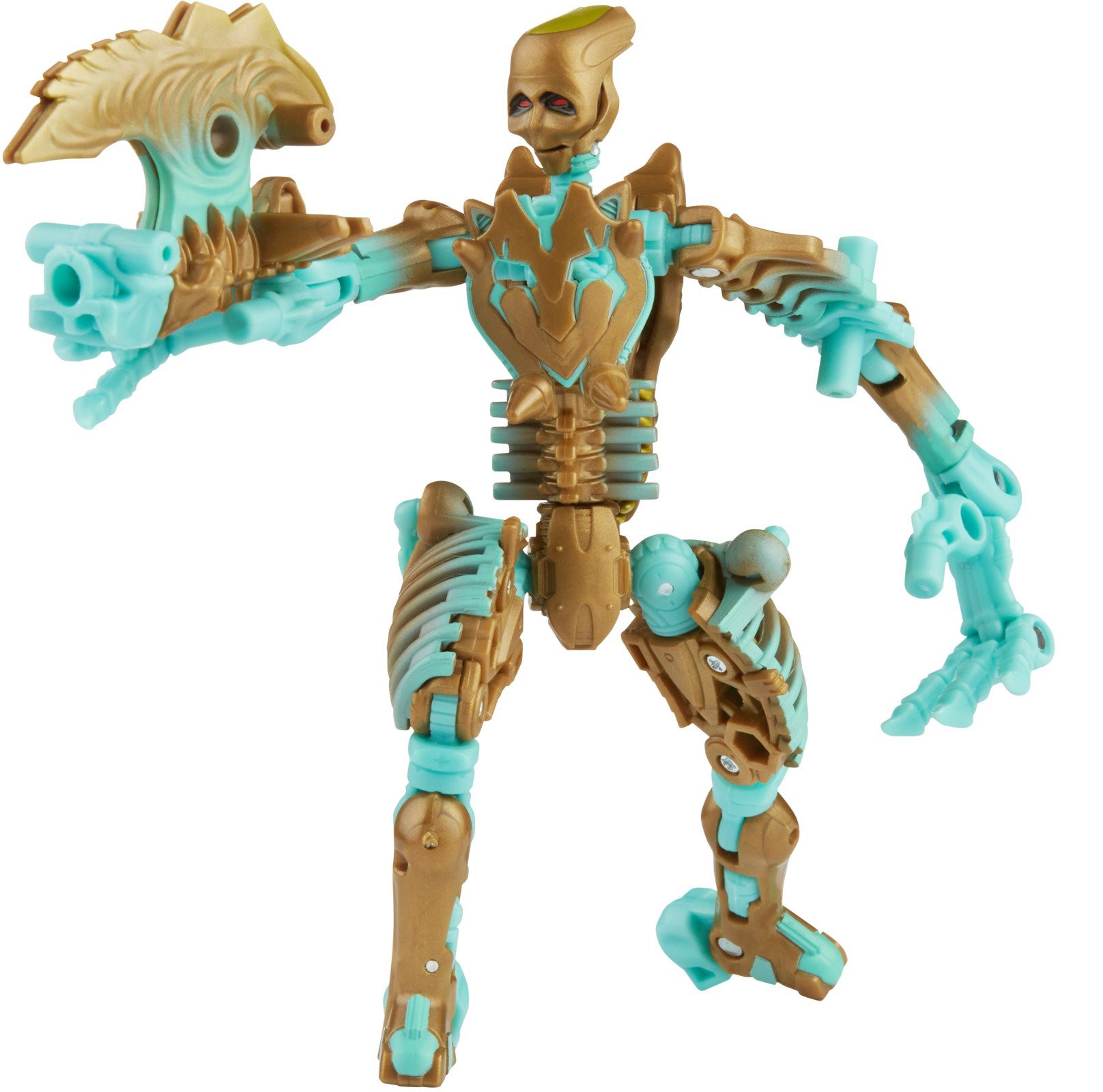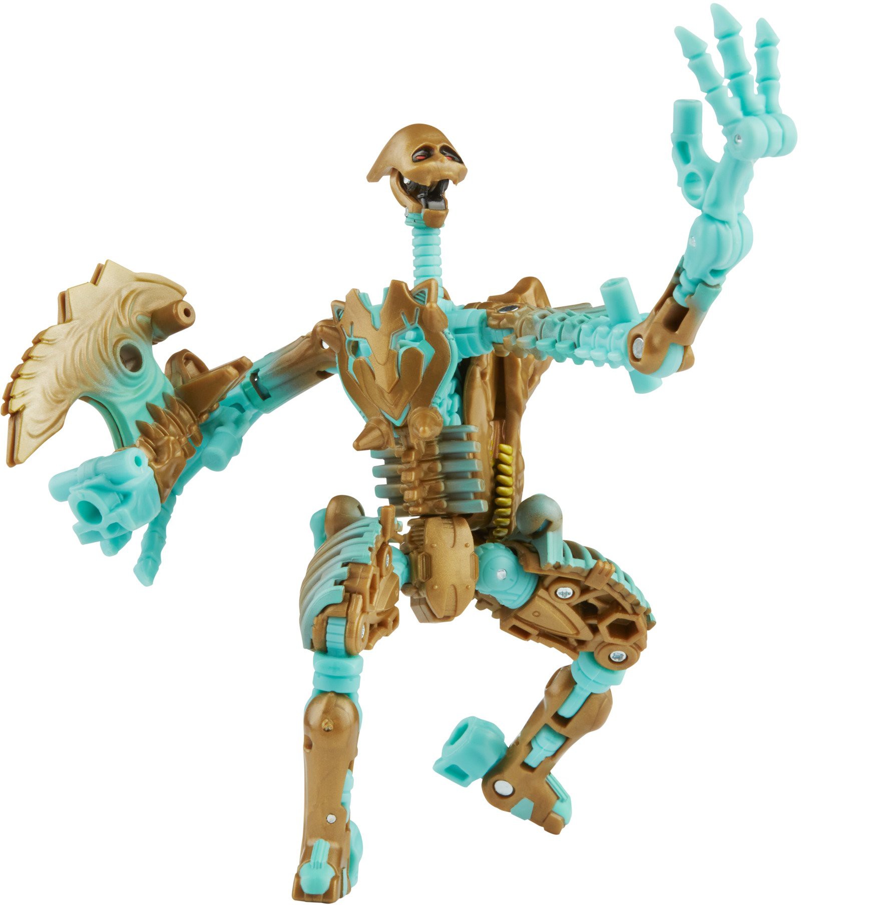 Transmutate was originally released as a build-a-figure in 2006, and now, she's available in a single pack! Paying homage to the original, this Transmutate figure can break apart into pieces. In this edition of the figure, the pieces can be used as bone armor and weapons for other figures (each sold separately, subject to availability). Though Transmutate cannot convert in the show, this figure converts from robot to beast mode in 32 steps.