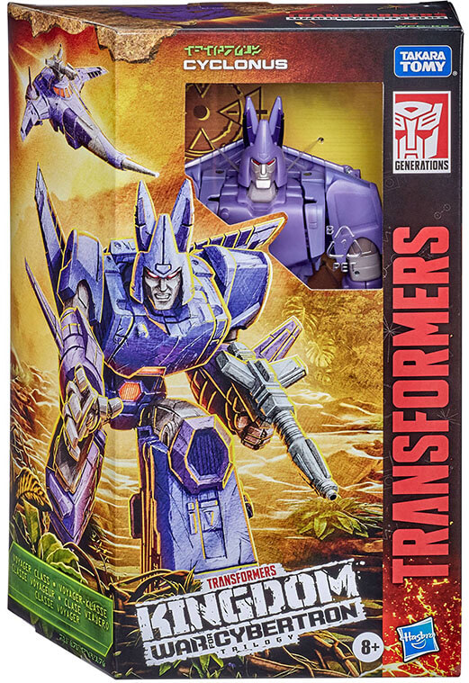 Includes Transformers Generations War for Cybertron: Kingdom Voyager Class Cyclonus figure, accessory, Golden Disk card, and instructions.