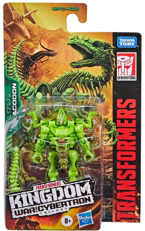 Robots and disguises go green - very green - with the Transformers War for Cybertron Kingdom Core Dracodon! This Dracorex fossil turns into a mighty green robot and back again, standing ready to bolster your ranks in the Cybertronian wars.