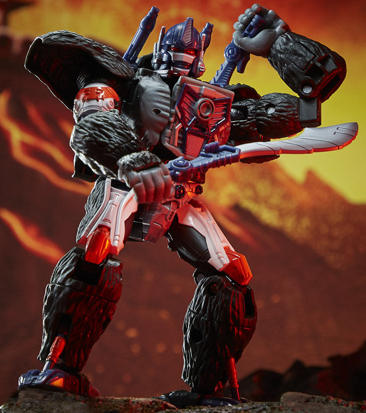 - Unleash the primal power of the beasts with this Optimus Primal collectible figure, featuring detailed beast mode with intricate gorilla-inspired molded fur texture