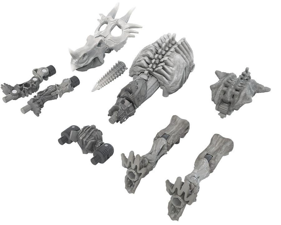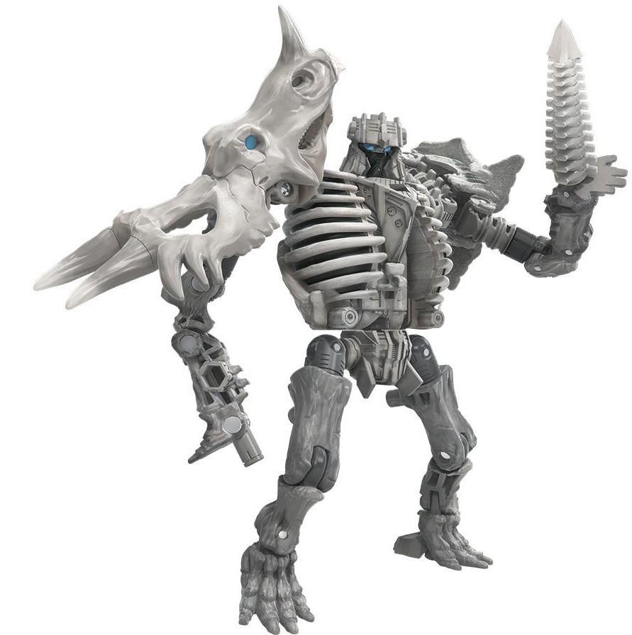 With the ancient and highly advanced F.O.S.S.I.L. (Fossilized Osteo-Skeletal Shield Integration Loadout) technology, Fossilizer bots, infused with primordial energy, break apart to weaponize their allies. The bone pieces of this Paleotrex figure break apart and attach to other figures. Use this Deluxe Predacon Fossilizer figure to beastify other figures with epic bone weapons and armor! (Sold separately, subject to availability.) Ractonite toy converts into a Styracosaurus fossil mode in 16 steps. Features lower jaw articulation optimal for roaring poses.