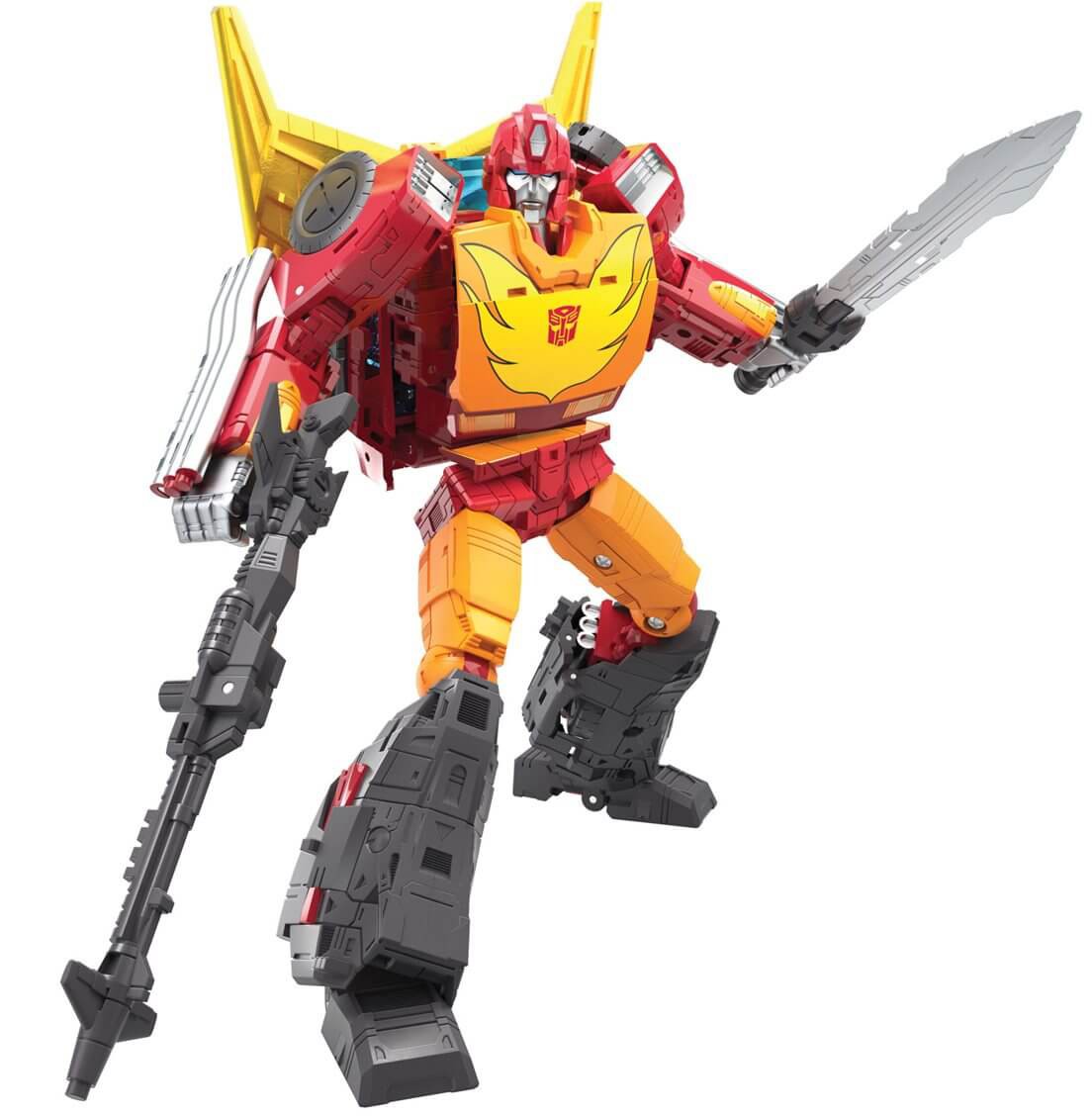 Rodimus Prime joins Commander Class! This figure depicts the brash and headstrong Autobot, Hot Rod, after he claims the Matrix of Leadership and becomes Rodimus Prime!