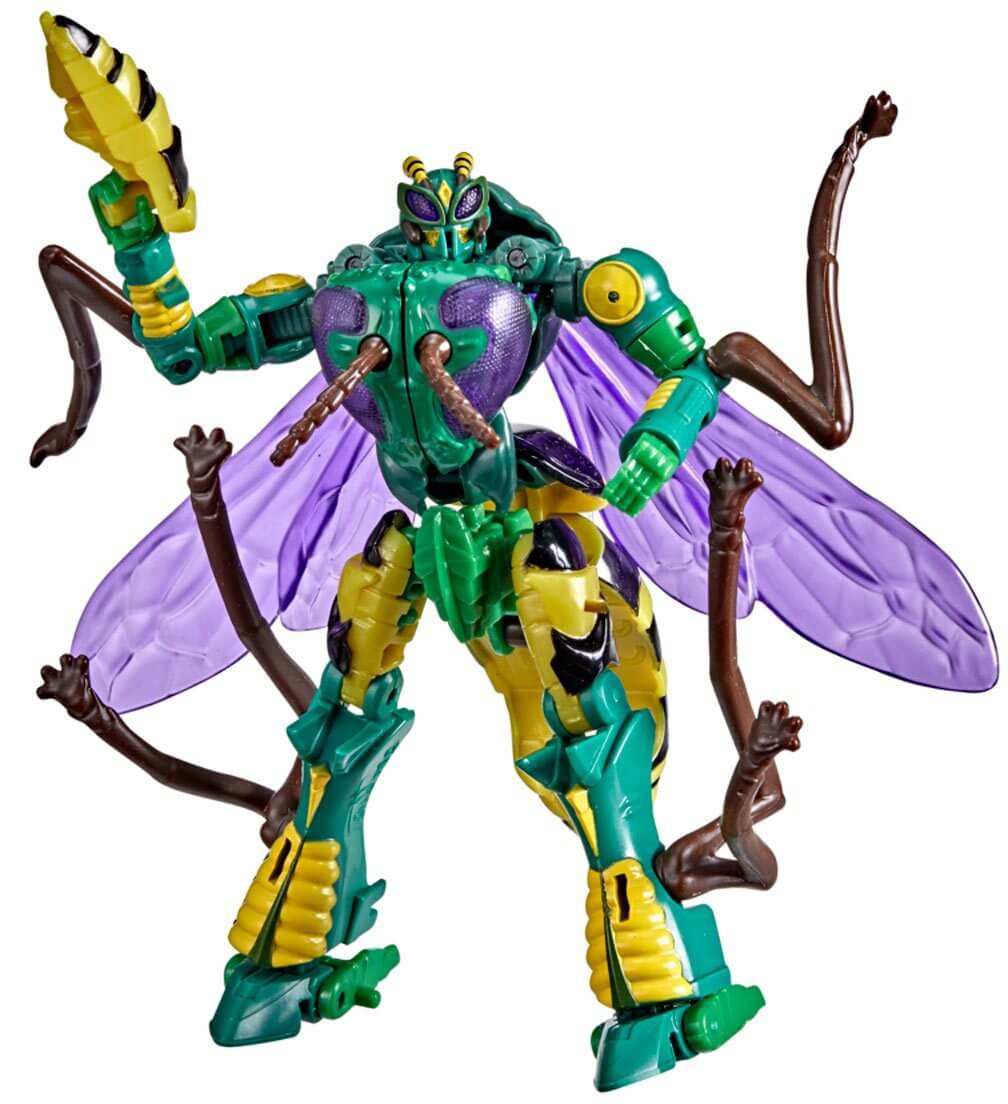 Waspinator... terrorize! The activation command for this Predacon agent strikes terror in the hearts of Maximals everywhere... or it would, if they weren't giggling. He may not be the best warrior, but he's loyal. This awesome Transformers War for Cybertron Kingdom Deluxe Waspinator changes from bug to robot and back again, and comes complete with a blaster that absolutely will stop the Maximals, really, we swear, and Rattrap won't blast him and steal his parts. But seriously, we love this guy, and you will too - there's a reason he was one of the most memorable characters on the 1990s animated series! You'll love having this figure on your desk, scheming with Megatron, being teased by his teammates, or perhaps just having him possessed by the ghost of Starscream. (Ghost of Starscream not included.)