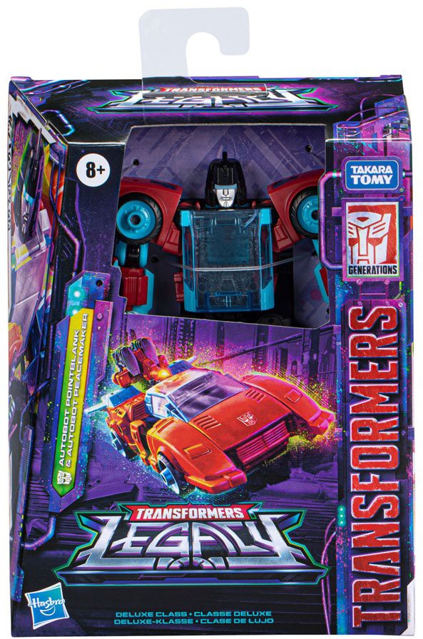 Utnyttja kraften i Energon med Transformers: Legacy Deluxe Autobot Pointblank och Autobot Peacemaker! Pointblank är trött på det ändlösa cybertroniska kriget. Han tror att ord är farligare än vapen, så han säger inte så mycket. Peacemaker försöker alltid muntra upp sin partner, med liten framgång.