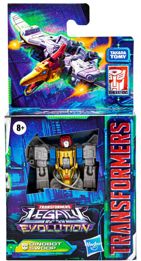 The battle is evolving with the Transformers Legacy Evolution Dinobot Swoop action figure! Swoop may be the friendliest of the Dinobots, but his alt mode sends his enemies running in fear as he soars menacingly overhead. Celebrate the last 40 years of Transformers history with Transformers Legacy action figures for boys and girls. Transformers Legacy opens the portal to a whole new universe of More Than Meets the Eye, bringing together every generation of Transformers like you've never seen before. Collect and combine different characters to create your ideal Legacy lineup.