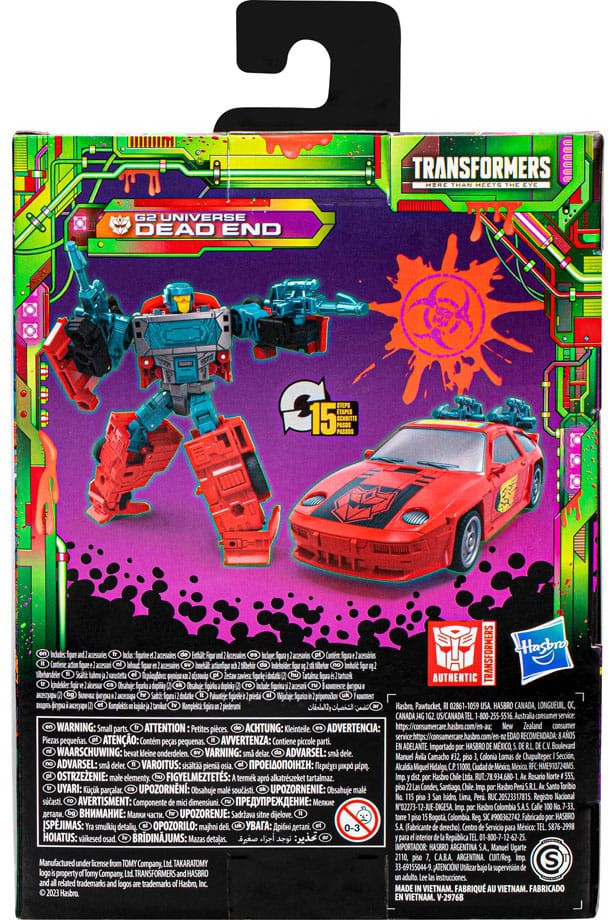G2 Universe Dead End actionfigur från Hasbro. Denna Transformers-actionfigur är inspirerad av de ursprungliga färgdesignerna från G2-leksaksserien på 90-talet. Det ljusa färgschemat på denna Transformers-leksak kommer säkert att sticka ut i alla fans samling.