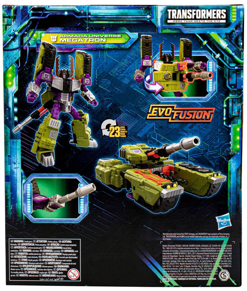 The battle is evolving with the Transformers Legacy Evolution Armada Universe Megatron action figure! Megatron will stop at nothing until he is the most powerful being in the universe. Transformers toys are upgraded with Evo-Fusion technology! Experience the evolution and convert the tank barrel into a chest-mounted Fusion Cannon to prepare for battle! Celebrate the last 40 years of Transformers history with Transformers Legacy action figures for boys and girls. Transformers Legacy opens the portal to a whole new universe of More Than Meets the Eye, bringing together every generation of Transformers like you've never seen before. Collect and combine different characters to create your ideal Legacy lineup.